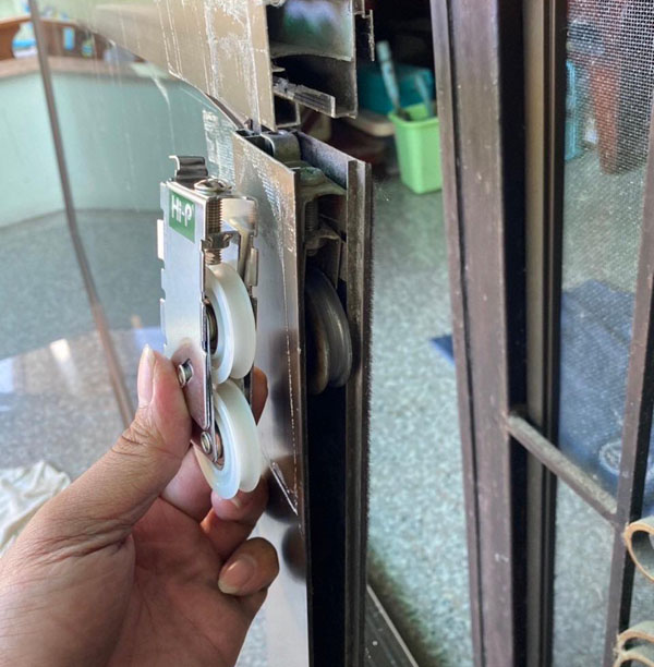 ฮาร์ดแวร์: เลือกรับประตูฮาร์ดแวร์ที่มีคุณภาพ เช่น ราง ล้อ และมือจับ